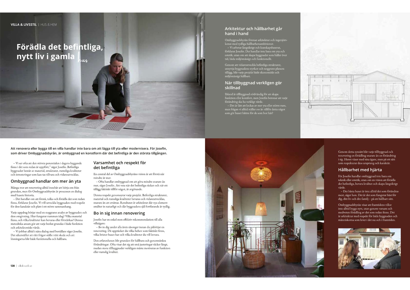 I det senaste numret av Villa & Livsstil medverkar Ombyggnadsbyrån i ett reportage om ombyggnad och hur befintliga hus kan utvecklas i stället för att ersättas. Reportaget handlar om vårt sätt att arbeta med arkitektur i befintliga byggnader och om de möjligheter som finns när man väljer att bygga om i stället för att riva och bygga nytt. I texten berättar vi om hur ombyggnad och tillbyggnad kan ge ett hus nya funktioner samtidigt som dess ursprungliga kvaliteter tas till vara.